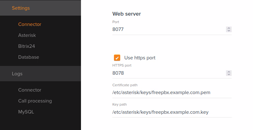 A reference of the form [wss://freepbx.example.com:8078/…](wss://freepbx.example.com:8078/%E2%80%A6)